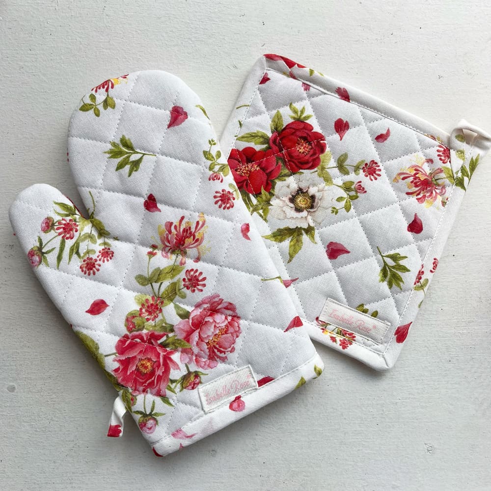 Uunikinnas ja uunilappu on valmistettu 100 % puuvillasta, mikä tekee siitä paitsi kauniin, myös käytännöllisen ja kestävän.